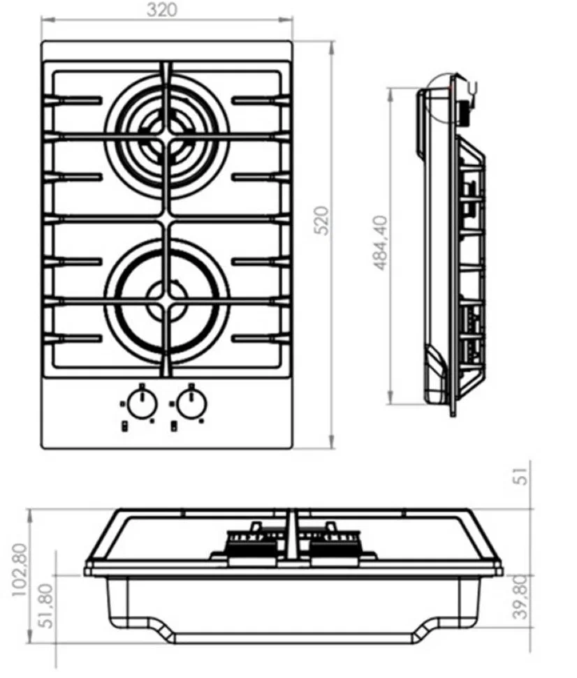i Приборы могут имеют разное количество газовых, электрических и индукционных конфорок. Выбирайте оптимальный вариант для комфортной готовки.