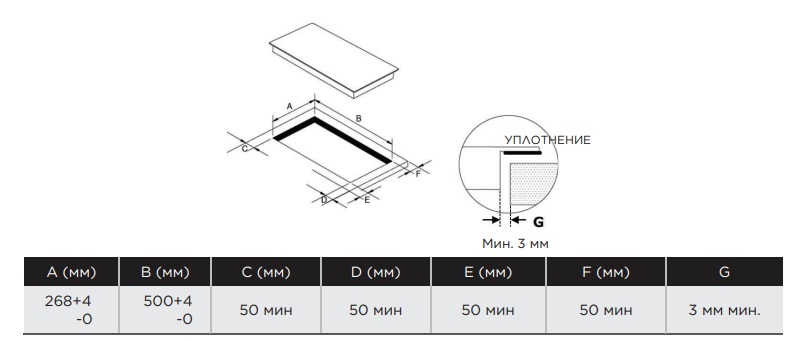 i Характер огранки фаски на внешней стороне варочной панели. Металлические рамки предотвращают забивание монтажных швов крошками и пылью.