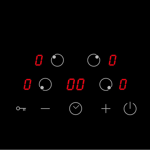 i Расположение панели управления варочной поверхностью относительно конфорок. Если панель расположена сбоку, она будет справа.