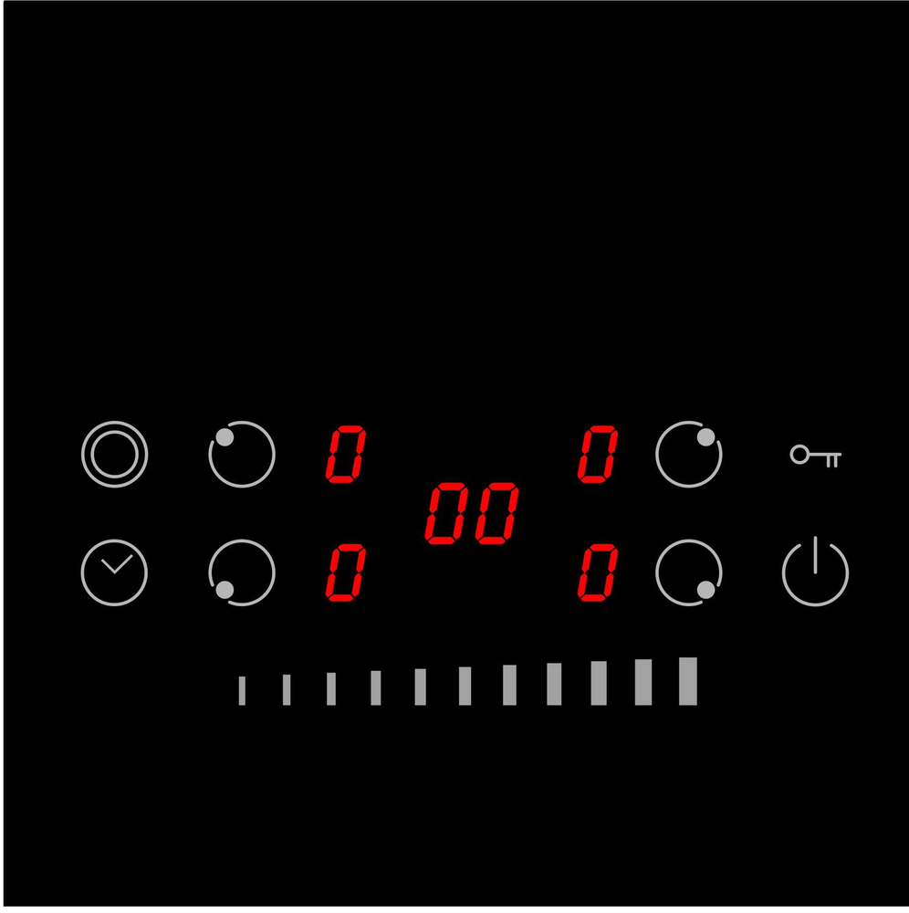 i Расположение панели управления варочной поверхностью относительно конфорок. Если панель расположена сбоку, она будет справа.