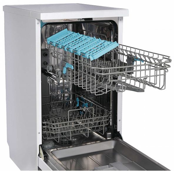 i В стандартной посудомоечной машине 3 корзины — 2 для посуды и 1 для столовых приборов. Современные модели могут иметь от 1 до 4 корзин.