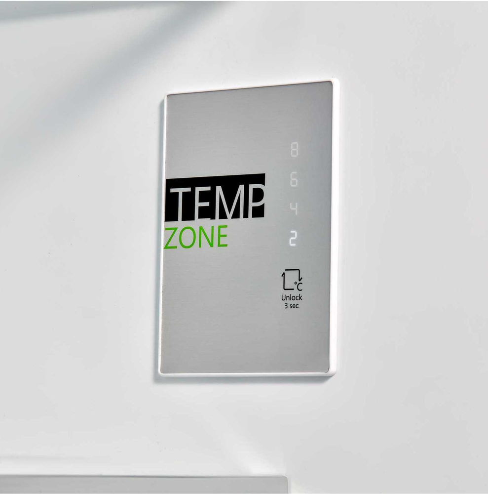 i В зоне свежести температура держится на уровне 0°С, так продукты дольше остаются свежими. Подходит для свежего мяса, рыбы, фруктов, овощей.