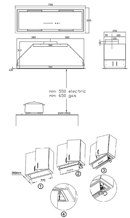 i В зависимости от расположения существует несколько типов установки кухонных вытяжек: встраиваемые, стандартные, пристенные, островные и др.
