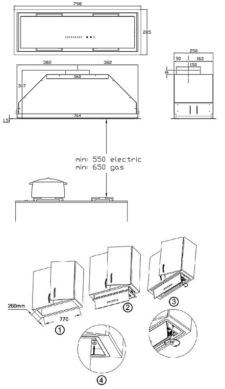 i В зависимости от расположения существует несколько типов установки кухонных вытяжек: встраиваемые, стандартные, пристенные, островные и др.