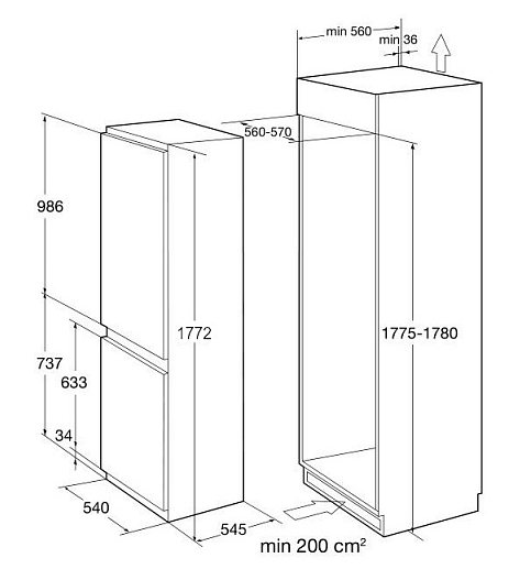 Korting KSI 17887 CNFZ двухкамерный холодильник встраиваемый