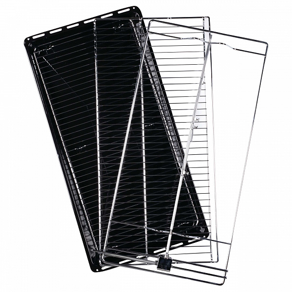 i Выдвижные металлические полозья, которые легко выезжают за пределы камеры духовки вместе с противнем, не давая ему упасть.