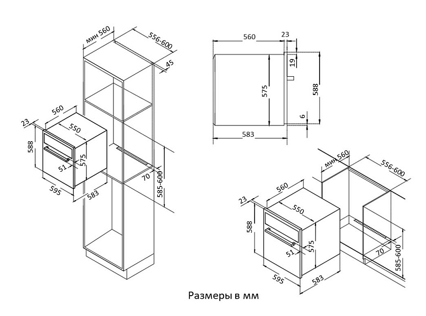 i Ширина корпуса электроприбора. Особенно важно точно знать точную допустимую ширину для встраиваемой техники.