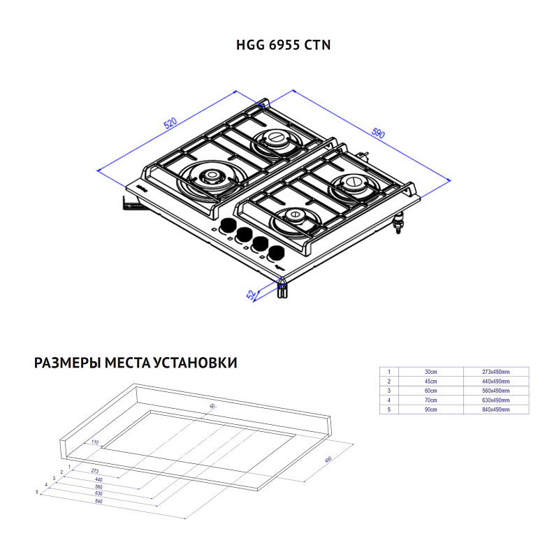 i Приборы могут имеют разное количество газовых, электрических и индукционных конфорок. Выбирайте оптимальный вариант для комфортной готовки.