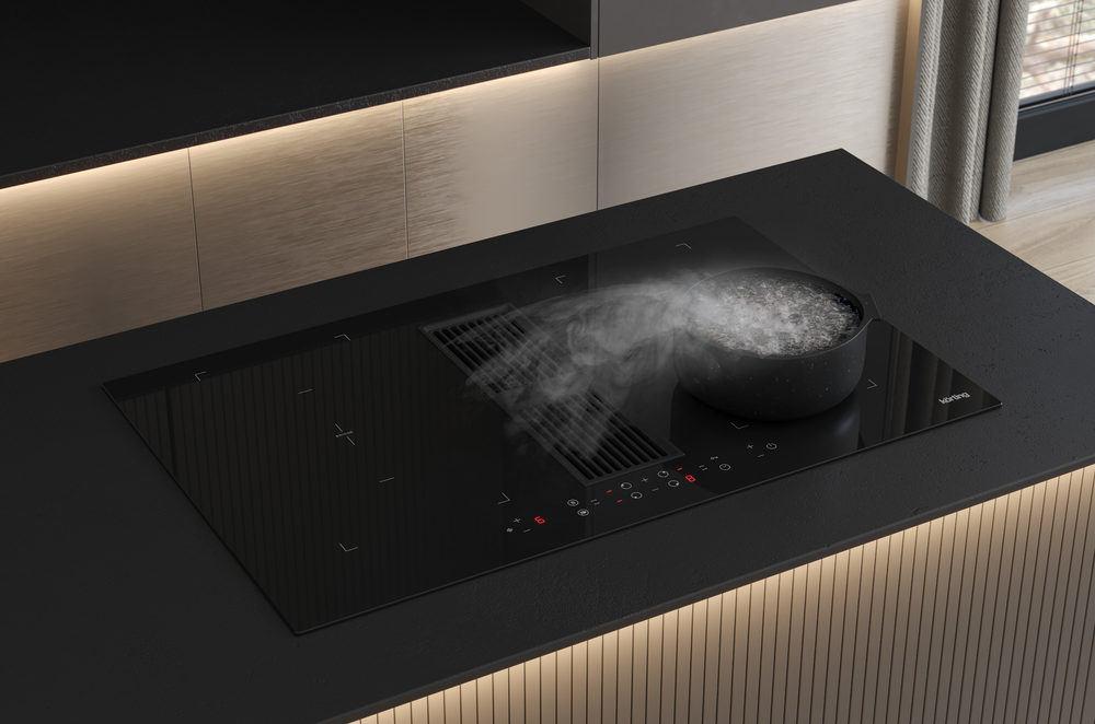 i Модели со встроенной вытяжкой подходят для компактных кухонь. Запахи, пар и дым от готовки полностью поглощаются встроенной вытяжкой.