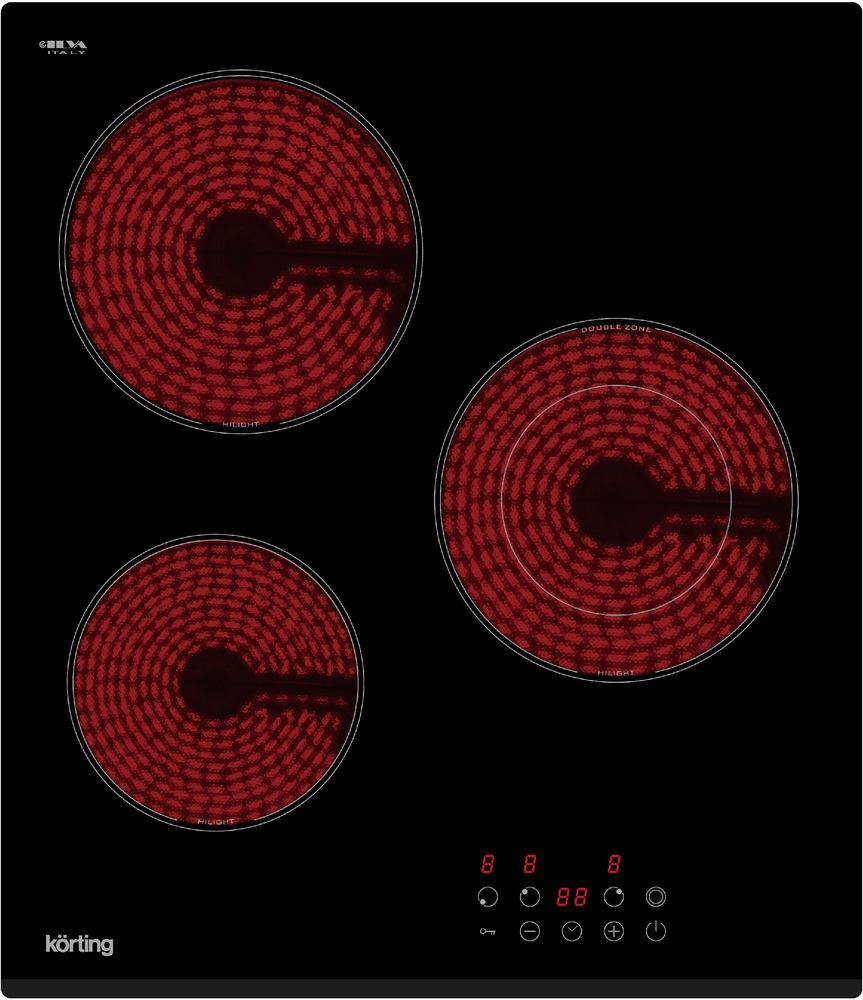 i Расположение панели управления варочной поверхностью относительно конфорок. Если панель расположена сбоку, она будет справа.
