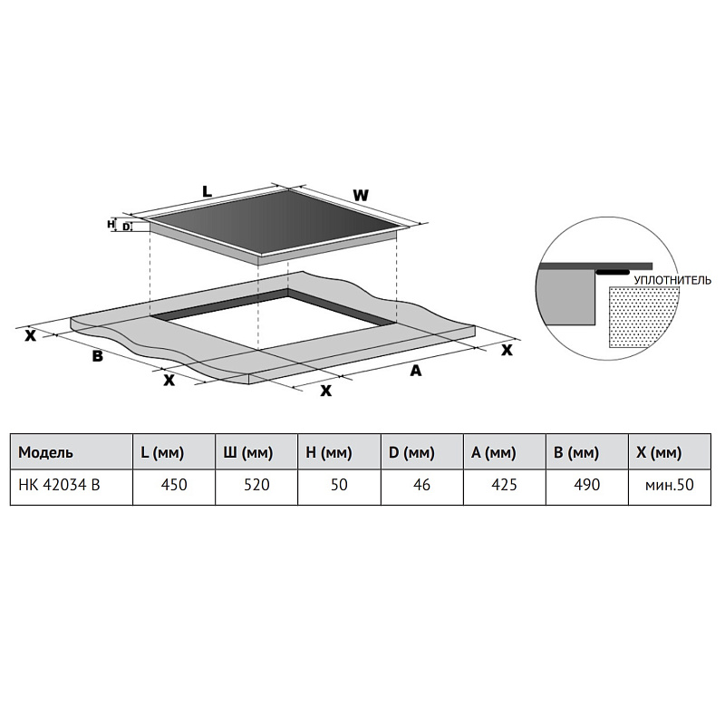 Свободная зона (Flexi зона) конфорка (мм/кВт)