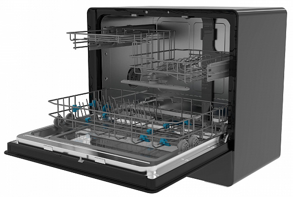 i В стандартной посудомоечной машине 3 корзины — 2 для посуды и 1 для столовых приборов. Современные модели могут иметь от 1 до 4 корзин.