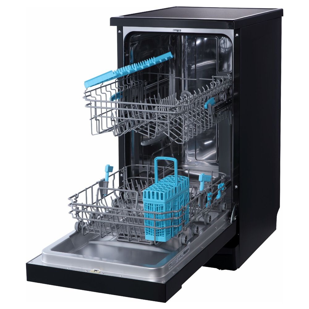i В стандартной посудомоечной машине 3 корзины — 2 для посуды и 1 для столовых приборов. Современные модели могут иметь от 1 до 4 корзин.