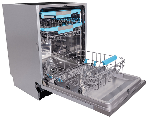 i В стандартной посудомоечной машине 3 корзины — 2 для посуды и 1 для столовых приборов. Современные модели могут иметь от 1 до 4 корзин.