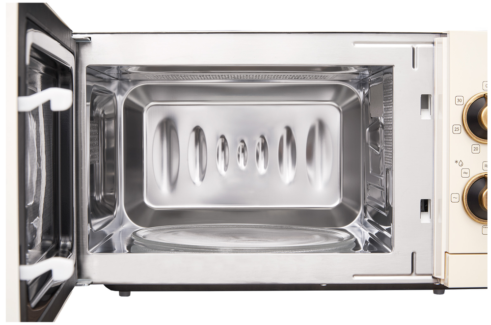 i Поворотный стол — это крутящееся блюдо в центре. Его отсутствие позволяет поместить в камеру посуду большого размера или неправильной формы.