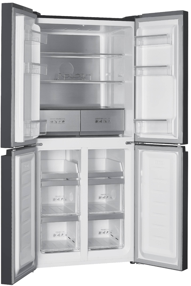 i Морозильная камера может быть расположена сверху, снизу от основной камеры, Side-by-Side. Также она может отсутствовать вовсе.