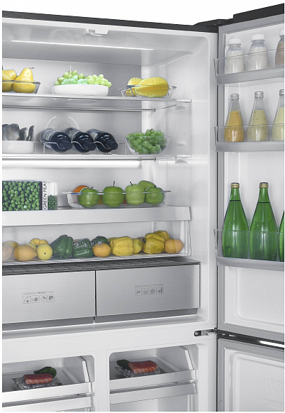 i В зоне свежести температура держится на уровне 0°С, так продукты дольше остаются свежими. Подходит для свежего мяса, рыбы, фруктов, овощей.