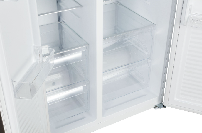 i Морозильная камера может быть расположена сверху, снизу от основной камеры, Side-by-Side. Также она может отсутствовать вовсе.