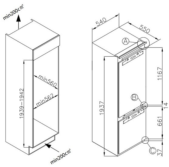Korting KSI 19547 CFNFZ двухкамерный холодильник встраиваемый