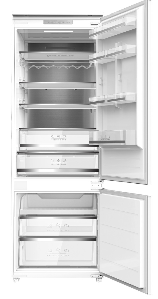 i В зоне свежести температура держится на уровне 0°С, так продукты дольше остаются свежими. Подходит для свежего мяса, рыбы, фруктов, овощей.