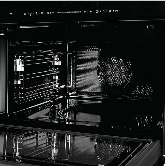 i Предполагает наличие встроенного вентилятора, который обеспечивает равномерное запекание благодаря непрерывной циркуляции горячего воздуха.