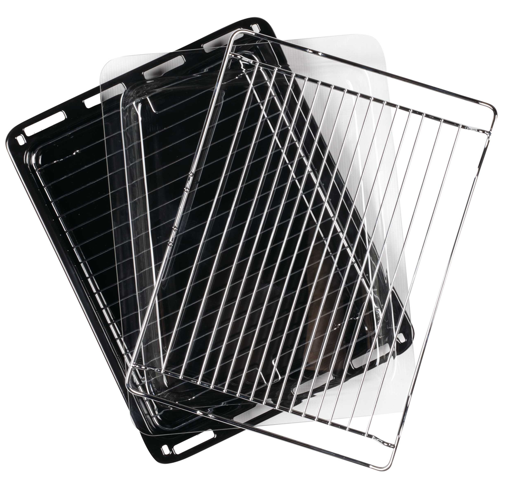 i Выдвижные металлические полозья, которые легко выезжают за пределы камеры духовки вместе с противнем, не давая ему упасть.