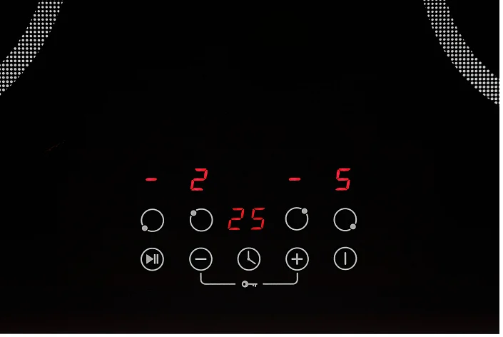 i Расположение панели управления варочной поверхностью относительно конфорок. Если панель расположена сбоку, она будет справа.