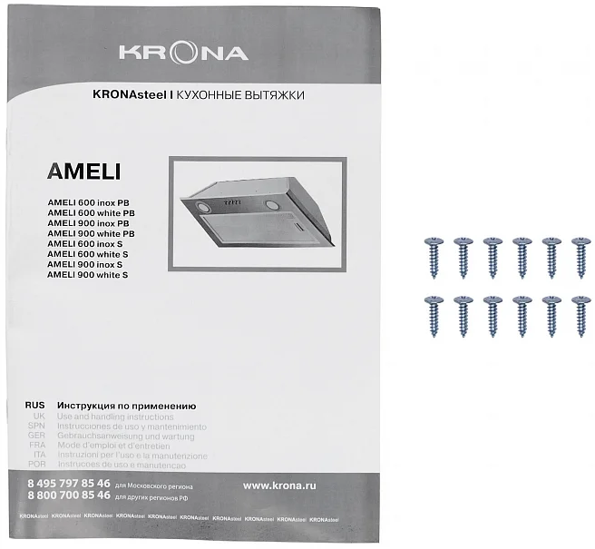 Krona Ameli 900 inox S встраиваемая вытяжка для шкафа