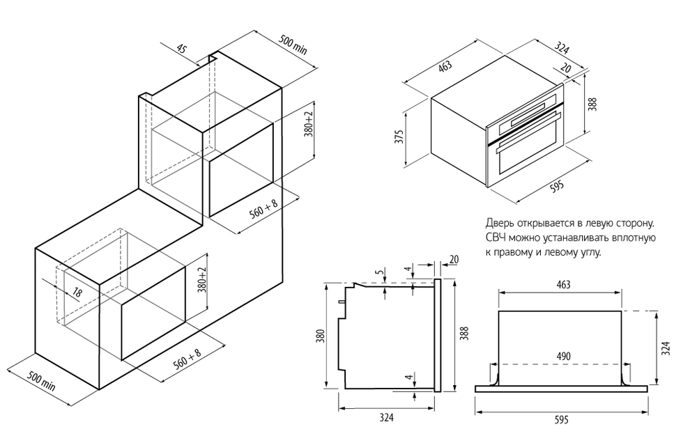 i Дверца может открываться по-разному в зависимости от конструкции. Ориентируйтесь на личные предпочтения и будущее расположение прибора.