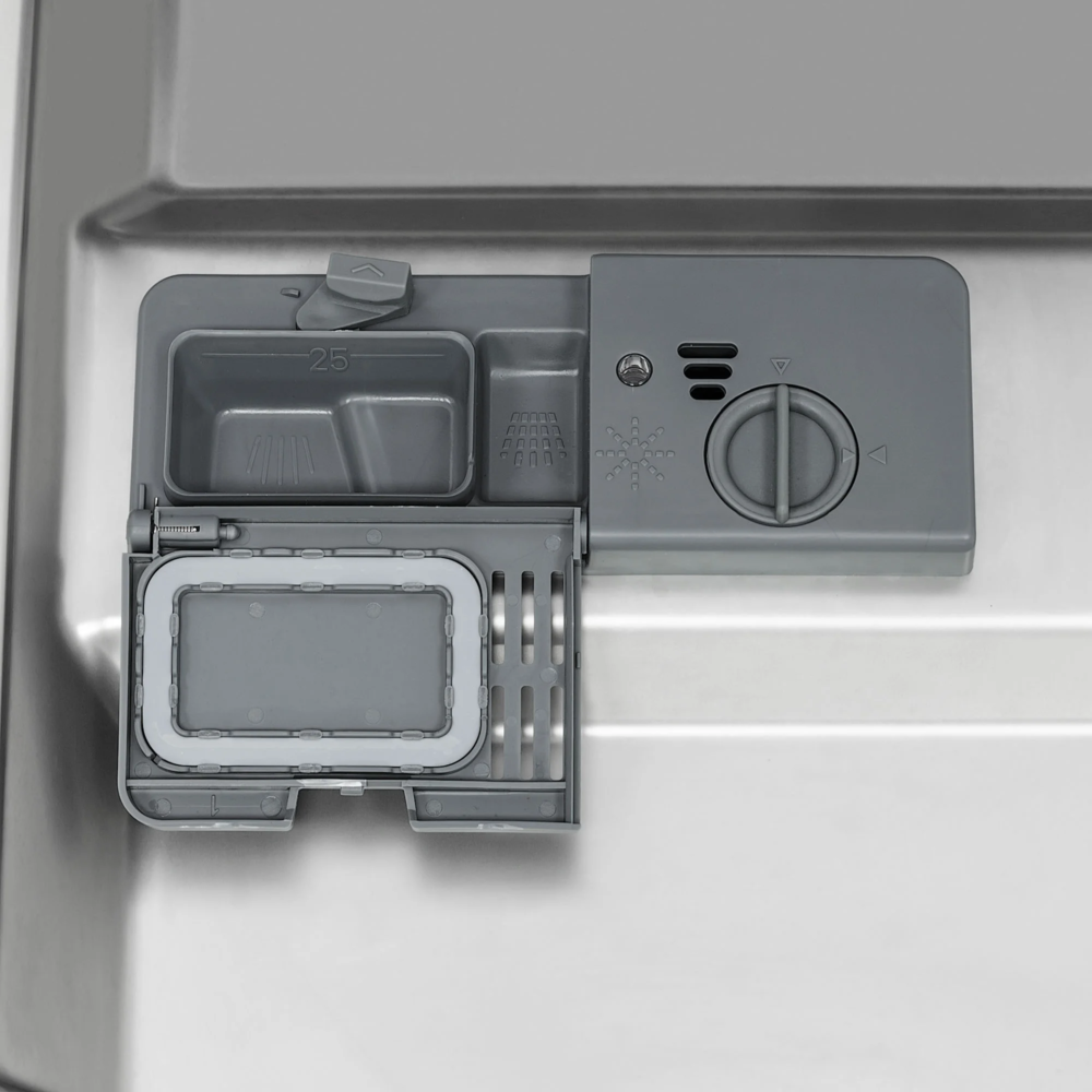 i Возможно использование специальных таблеток 3в1, включающих моющее средство, ополаскиватель и соль для смягчения воды. Это быстро и удобно.