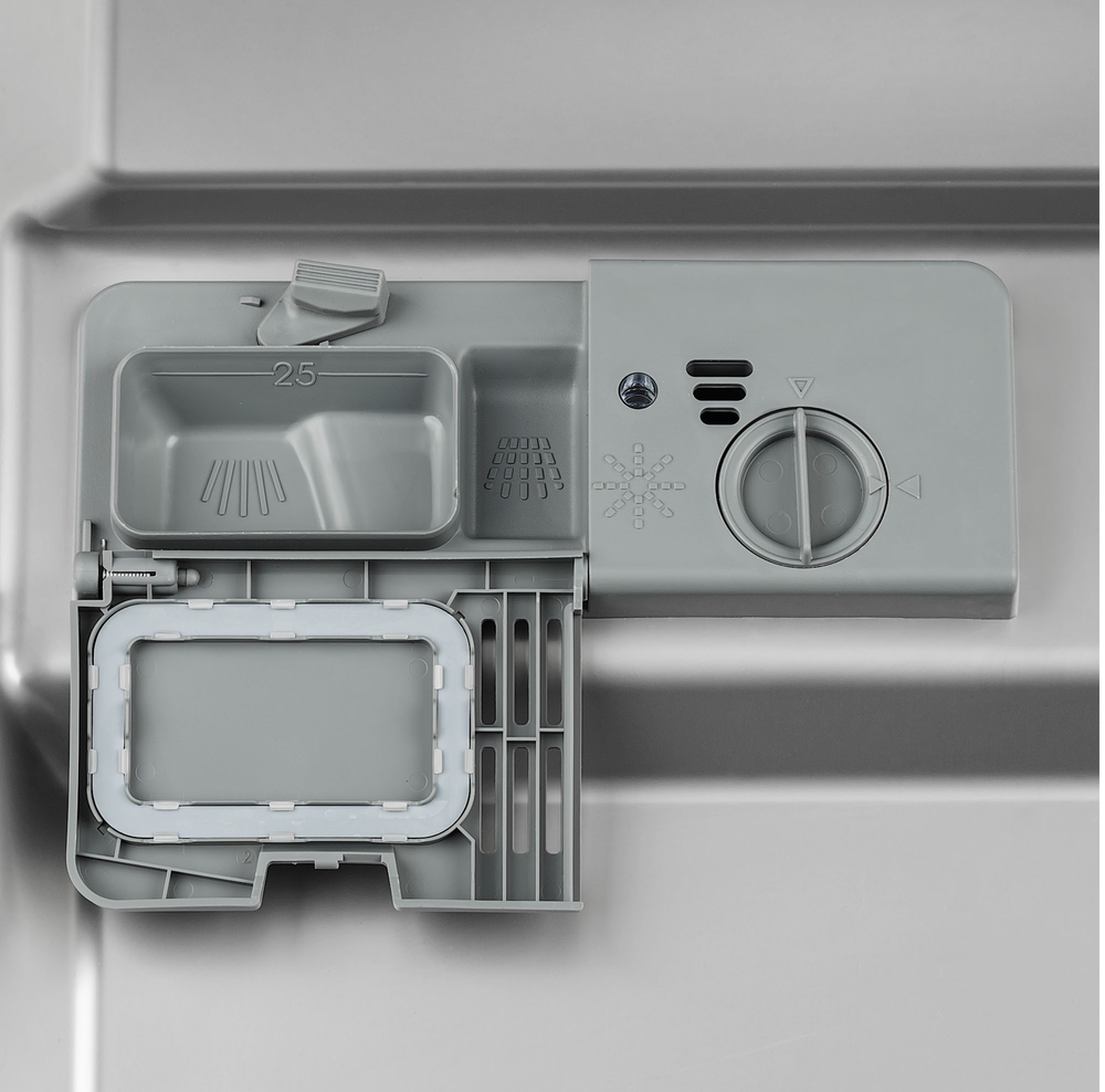i Возможно использование специальных таблеток 3в1, включающих моющее средство, ополаскиватель и соль для смягчения воды. Это быстро и удобно.