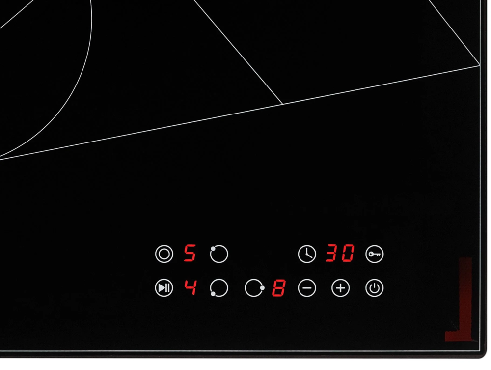 i Расположение панели управления варочной поверхностью относительно конфорок. Если панель расположена сбоку, она будет справа.