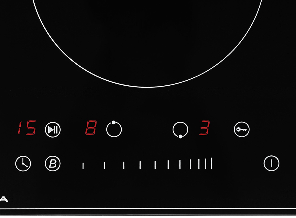 i Расположение панели управления варочной поверхностью относительно конфорок. Если панель расположена сбоку, она будет справа.