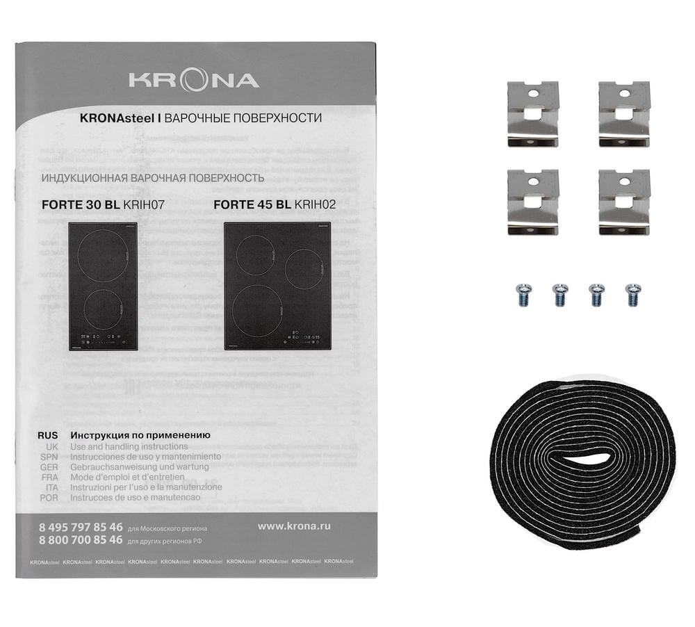 i На варочной поверхности может быть от 2 до 8 электрических конфорок с индукционным нагревом. Для них нужна специальная посуда.