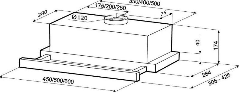 Krona Kamilla 450 inox (1 мотор) встраиваемая вытяжка телескопическая