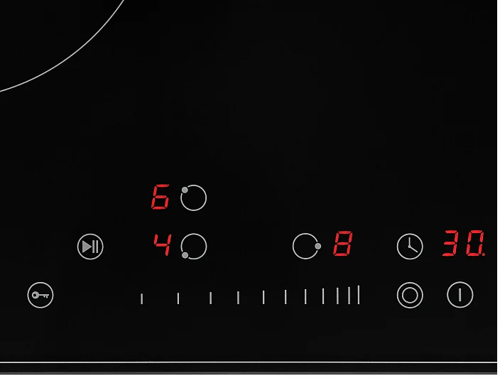 i Расположение панели управления варочной поверхностью относительно конфорок. Если панель расположена сбоку, она будет справа.