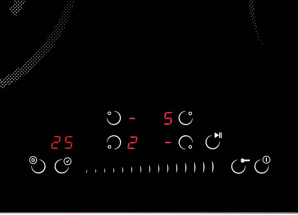 i Расположение панели управления варочной поверхностью относительно конфорок. Если панель расположена сбоку, она будет справа.