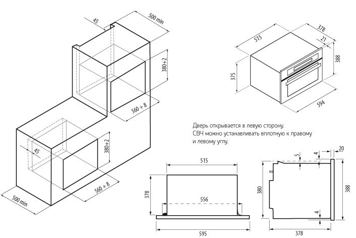 i Дверца может открываться по-разному в зависимости от конструкции. Ориентируйтесь на личные предпочтения и будущее расположение прибора.