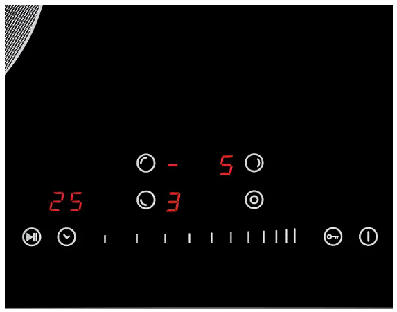 i Расположение панели управления варочной поверхностью относительно конфорок. Если панель расположена сбоку, она будет справа.