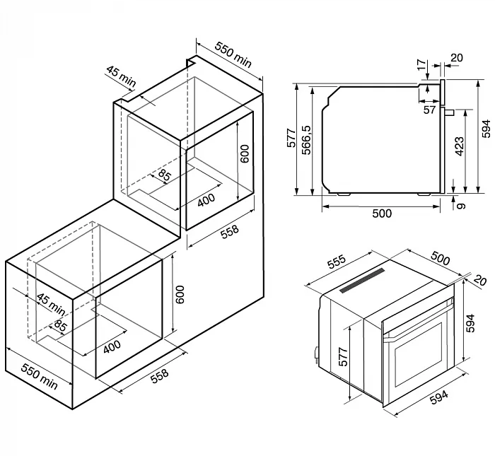 i Ширина корпуса электроприбора. Особенно важно точно знать точную допустимую ширину для встраиваемой техники.