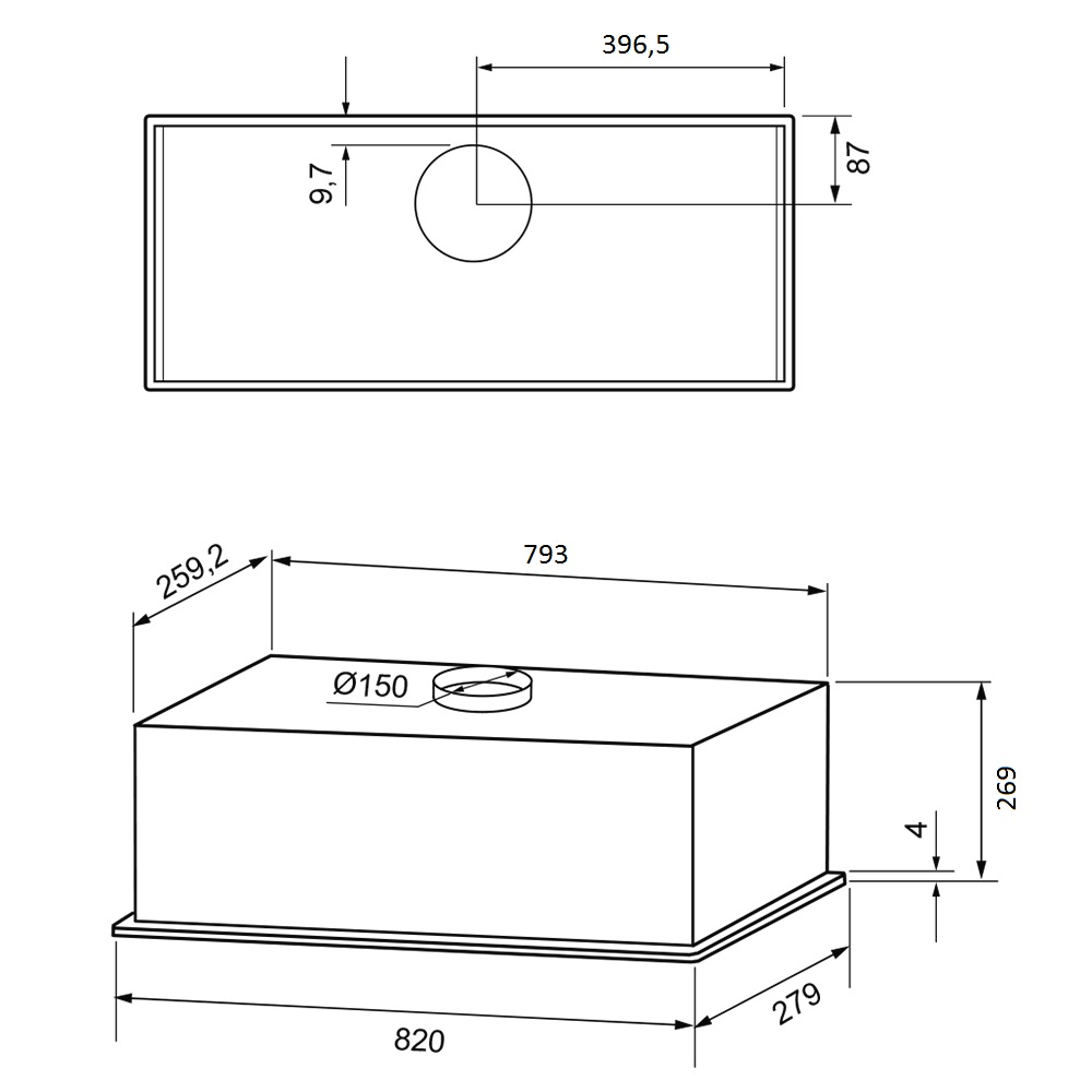 Krona ASPEN 900 BLACK SGC встраиваемая вытяжка для шкафа