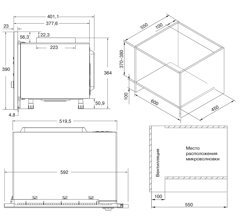 Krona ESSEN 60 IX встраиваемая микроволновая печь