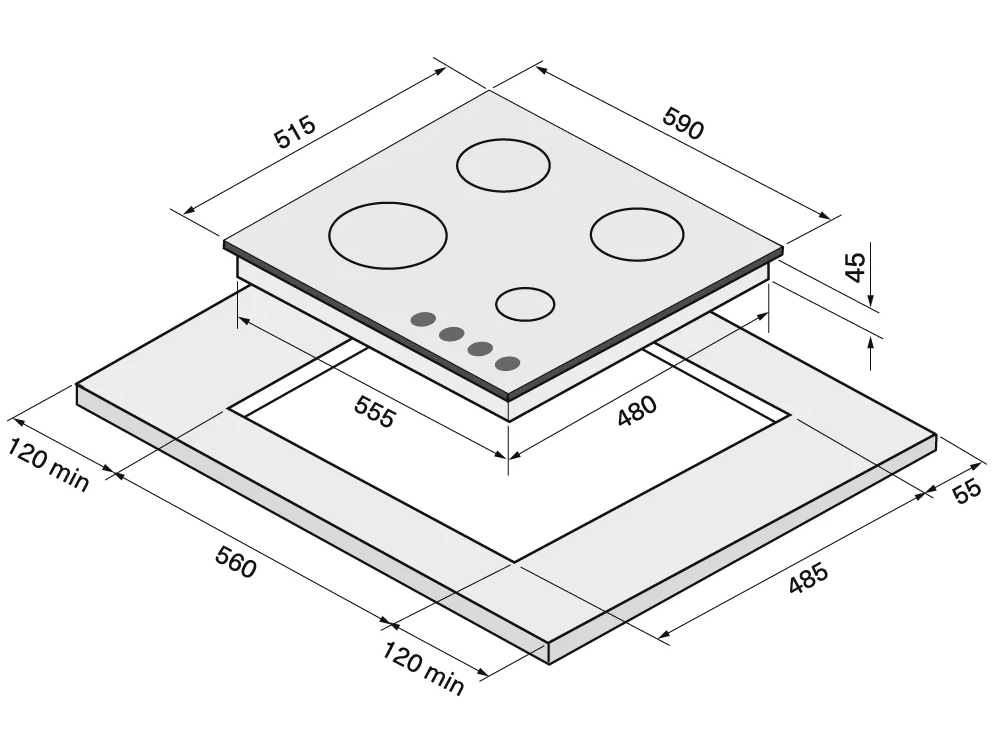 i Приборы могут имеют разное количество газовых, электрических и индукционных конфорок. Выбирайте оптимальный вариант для комфортной готовки.