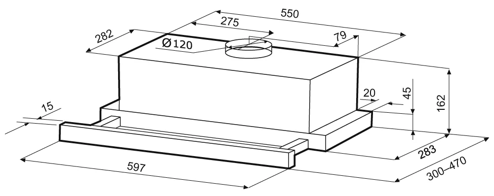 Krona Kamilla T 600 inox (1 мотор) встраиваемая вытяжка телескопическая