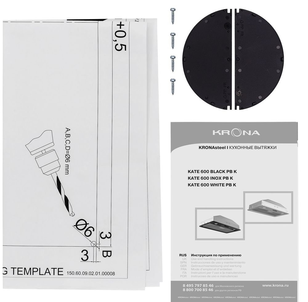 Krona KATE 600 GLASS BLACK PB встраиваемая вытяжка для шкафа