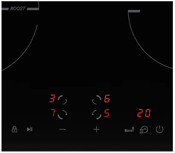 i Возможность значительно повысить мощность конфорки на несколько минут (от 2 до 10). Скорость нагрева увеличивается примерно на 30%.