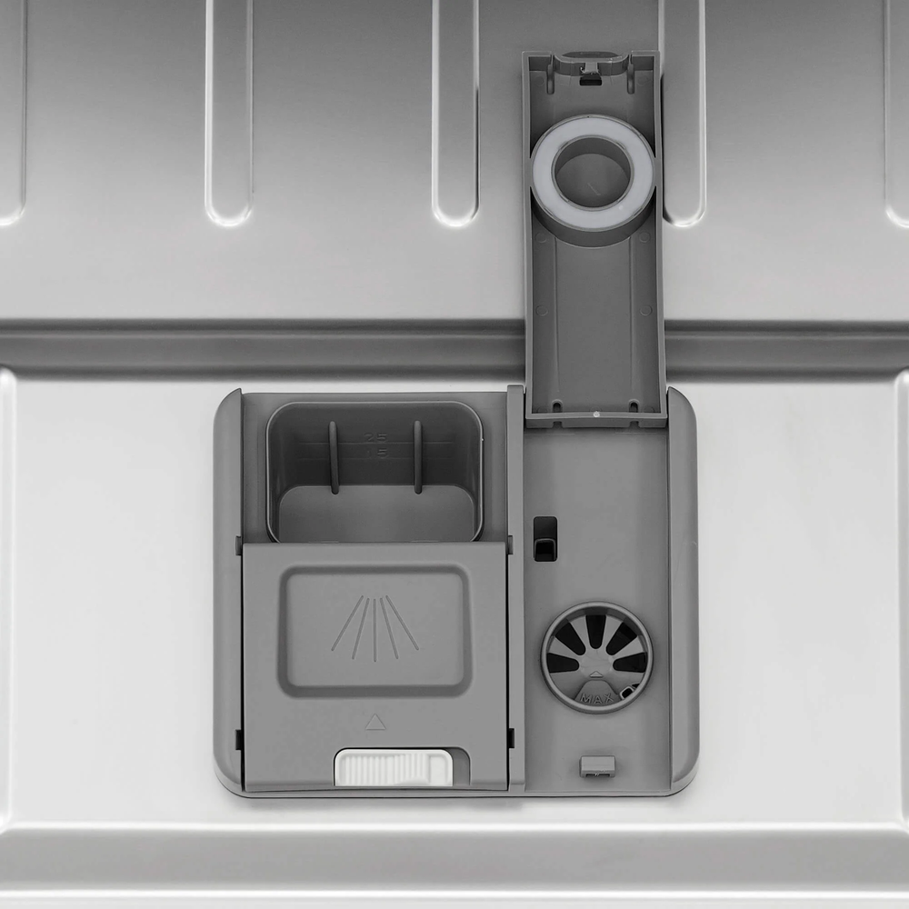 i Возможно использование специальных таблеток 3в1, включающих моющее средство, ополаскиватель и соль для смягчения воды. Это быстро и удобно.