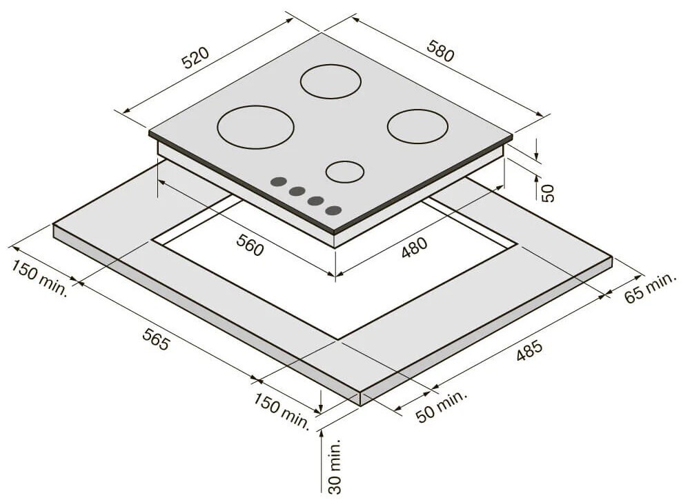 i Приборы могут имеют разное количество газовых, электрических и индукционных конфорок. Выбирайте оптимальный вариант для комфортной готовки.
