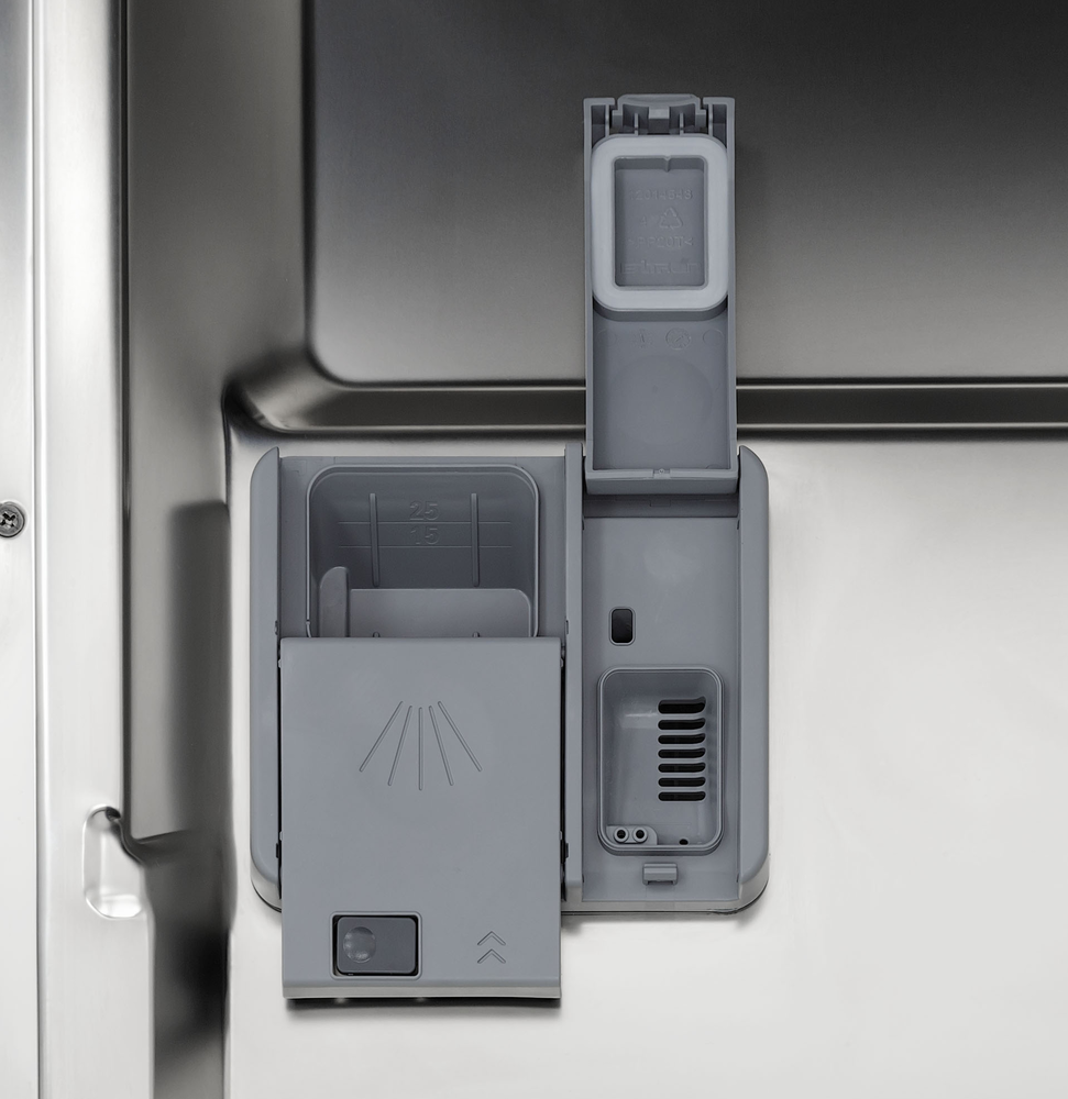 i Возможно использование специальных таблеток 3в1, включающих моющее средство, ополаскиватель и соль для смягчения воды. Это быстро и удобно.
