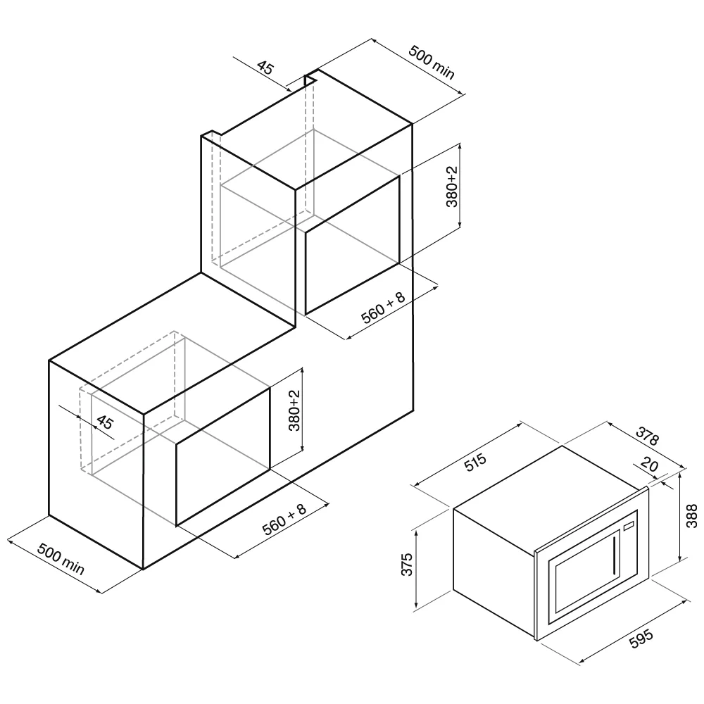 Ширина встраивания, мм
